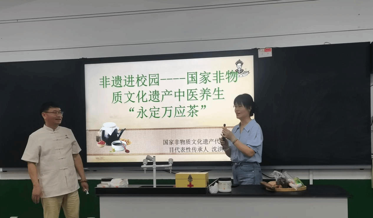职业教育活动周为师生搭建了技能竞技、大展风采的广阔平台,对弘扬劳模精神、劳动精神、工匠精神具有重要意义。为进一步创新活动形式营造“尊重技能、崇尚技能”的良好氛围,医学护理学院中药学专业为传承古法技艺,创新现代制茶技术,诚邀“国家非物质文化遗产代表性传承人”沈洪海先生作为专家于2024年05月10日下午3:00,在天马校区107实训室开展“万应茶制作工艺”互动讲座,并指导师生进行药膳茶制作活动。