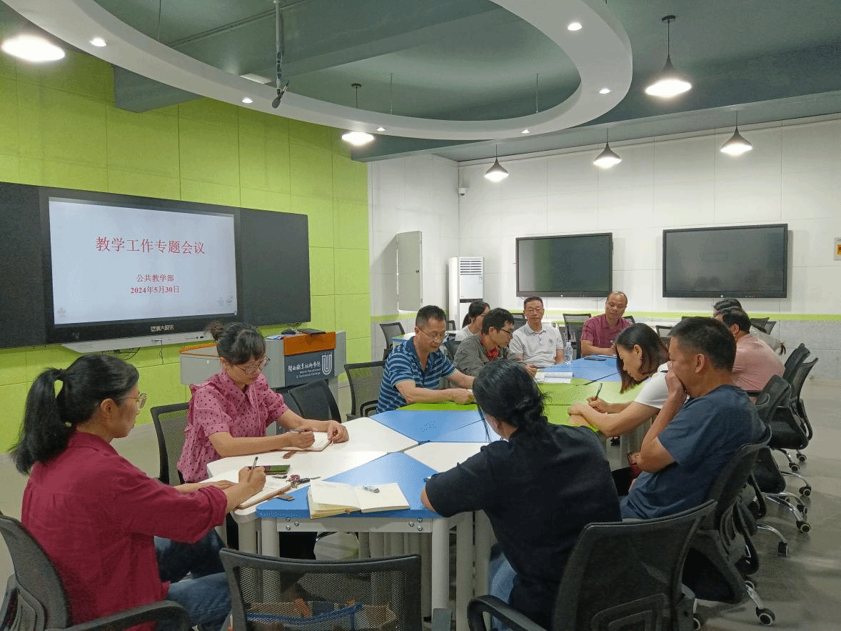 5 月 30 日,公共教学部教学工作专题会议顺利召开。会议由彭复生主任主持,学校教务处陈开森教授莅临指导,公共教学部党政联席会成员、教学工作与教学督导小组成员参加专题会议。