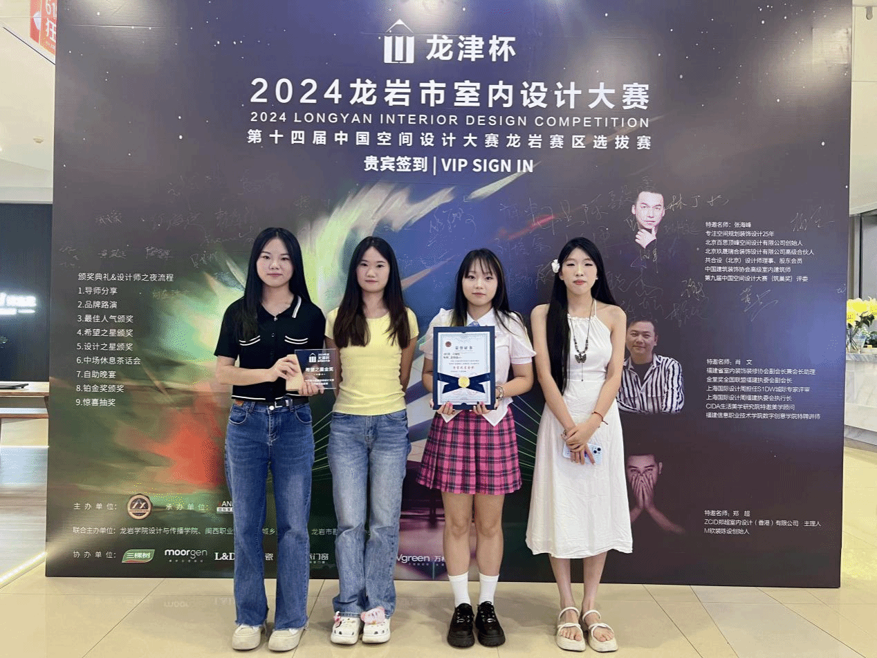 6月29日下午,2024龙岩市“龙津杯”室内设计大赛颁奖仪式在万宝家居国际博览中心隆重举行。建筑室内设计专业学生参赛作品获学生组金奖1项、银奖2项。