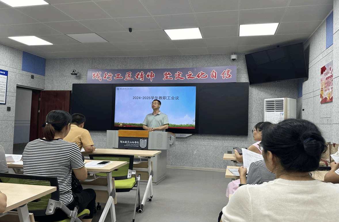 9月1日,公共教学部在智慧教室举行了新学期全体教师工作会议。会议旨在回顾上一学期的工作成果,明确新学期的工作方向和目标,并强调师德师风建设的重要性。会议由彭复生主任主持。他首先对新加入的六位教师表示了热烈的欢迎,并对他们的加入表达了期待,希望新教师们能够迅速融入团队,为学校的发展贡献力量。