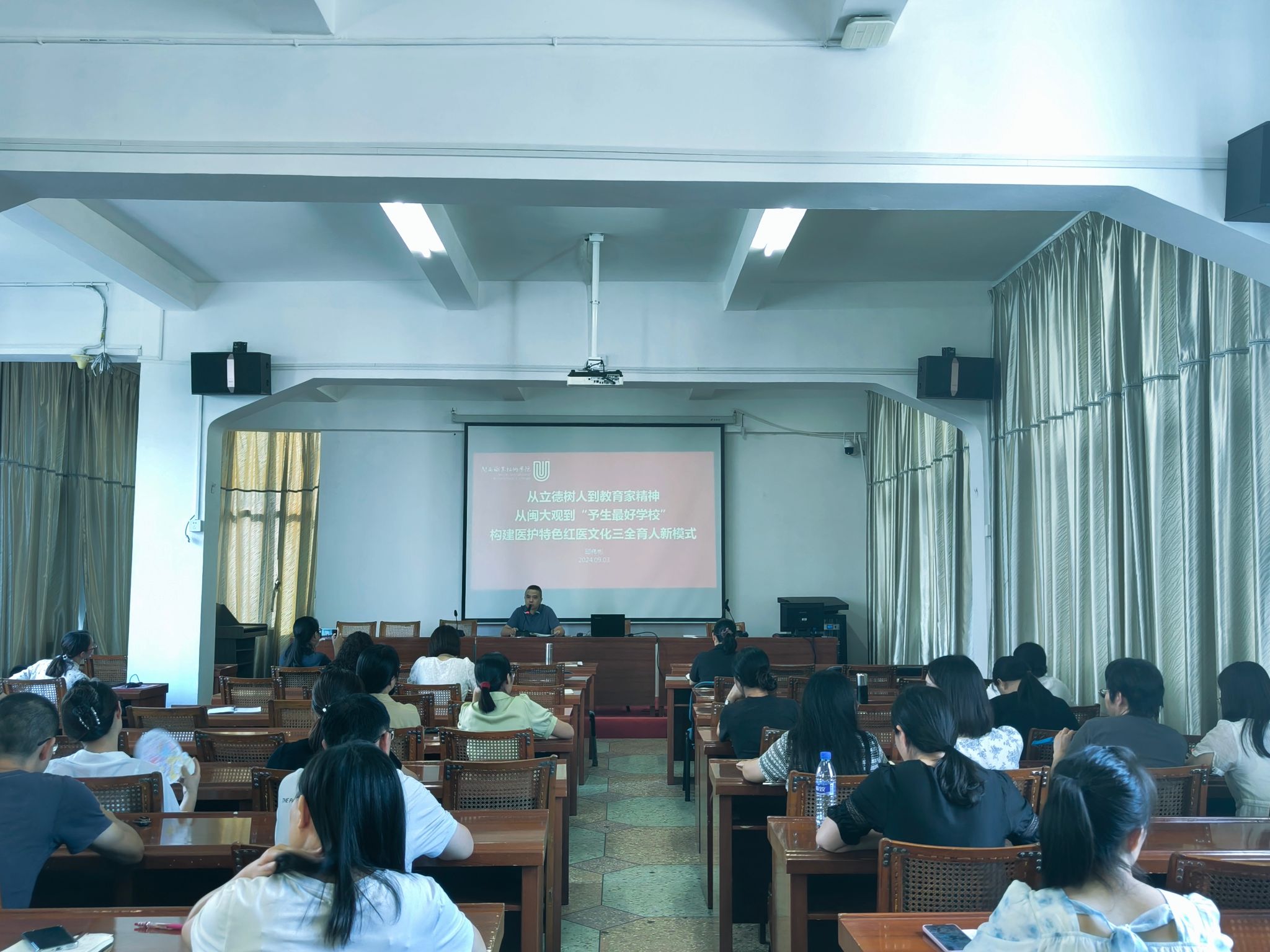 为进一步凝聚思想共识,鼓足发展干劲,新学期伊始,医学护理学院召开2024-2025学年第一学期教职工大会,会议由学院党委书记邱伟彬主持。