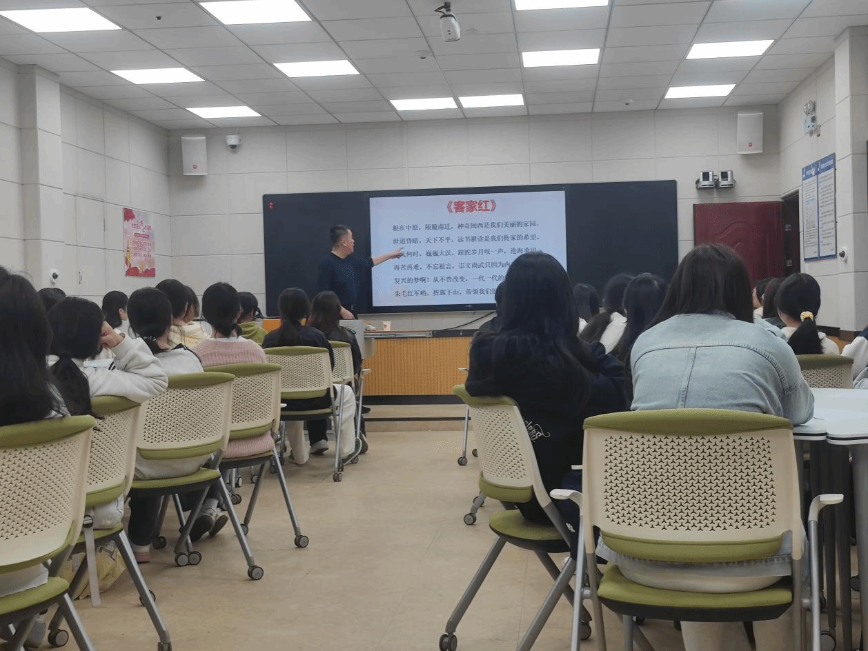 卢书记先是介绍了创作《客家红》这首歌曲的初衷,他希望通过音乐的形式,将客家地区源远流长的传统文化展现给更多人,让那些在历史长河中熠熠生辉的客家故事、红色故事得以传颂。卢书记讲述,在创作过程中,那些英勇无畏的客家儿女投身革命斗争的事迹和发生在客家土地上的重要战役和历史节点,都成为了歌曲创作的灵感源泉。在谈到歌曲的创作特色时,卢书记提到,《客家红》巧妙地融合了客家山歌悠扬婉转的韵味,同时又不失现代音乐的大气磅礴;歌词方面,则用质朴而深情的话语,描绘出客家人对红色信仰的坚守。卢书记逐句讲解演绎,引起同学们强烈的共鸣。活动在同学们激昂深情的演唱中落下帷幕。此次歌曲创作分享会,不仅让教育与艺术学院的同学们深入了解了《客家红》这首优秀音乐作品的诞生过程,也是传承与弘扬红色文化的最好课堂。