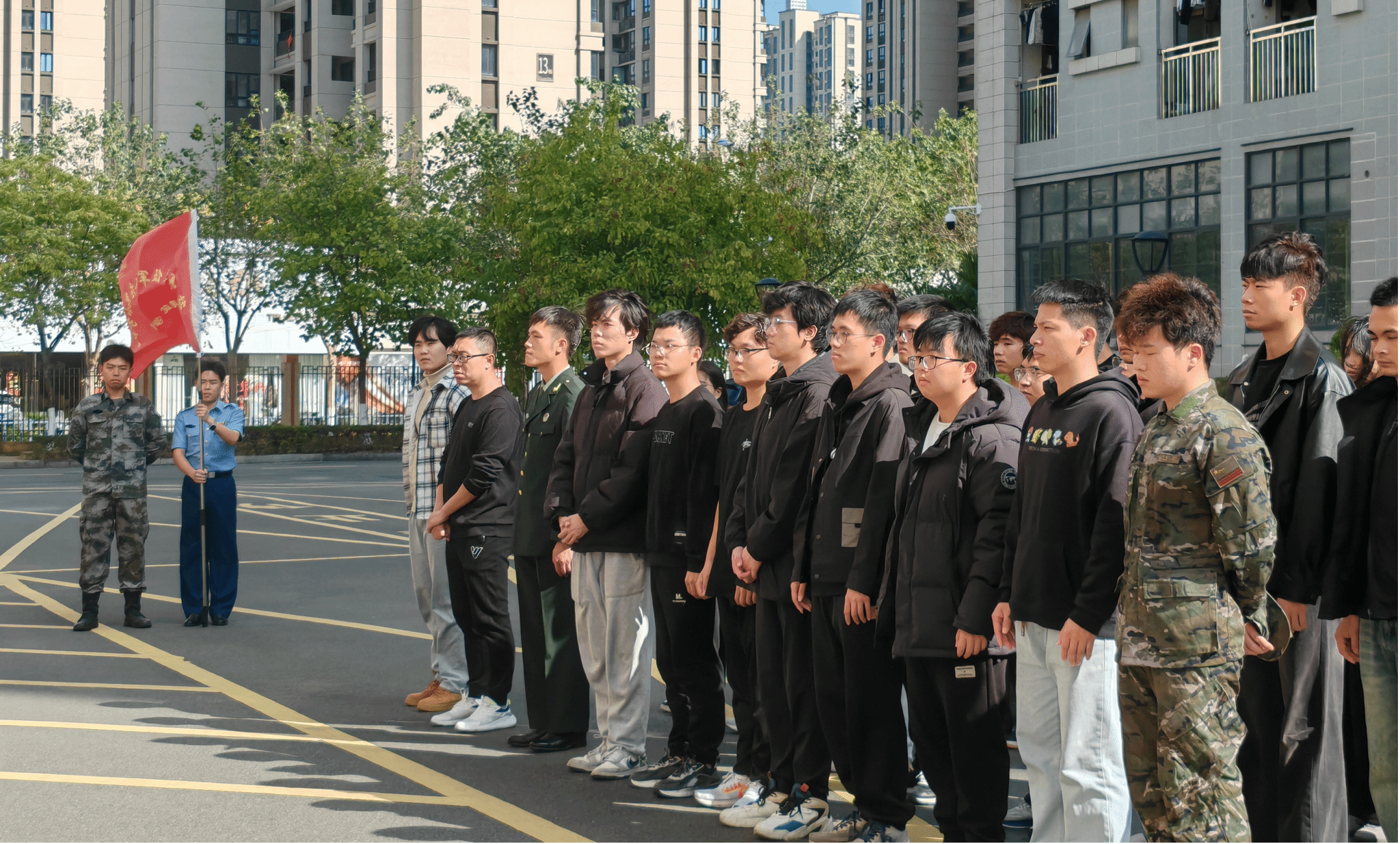 授旗仪式上,林茂才院长将队旗授予应急小分队,标志着"军营文化浸润+专业技能实践"双向赋能机制正式启动。这支"不穿军装的守护者"正以迷彩本色为平安校园建设注入新动能。