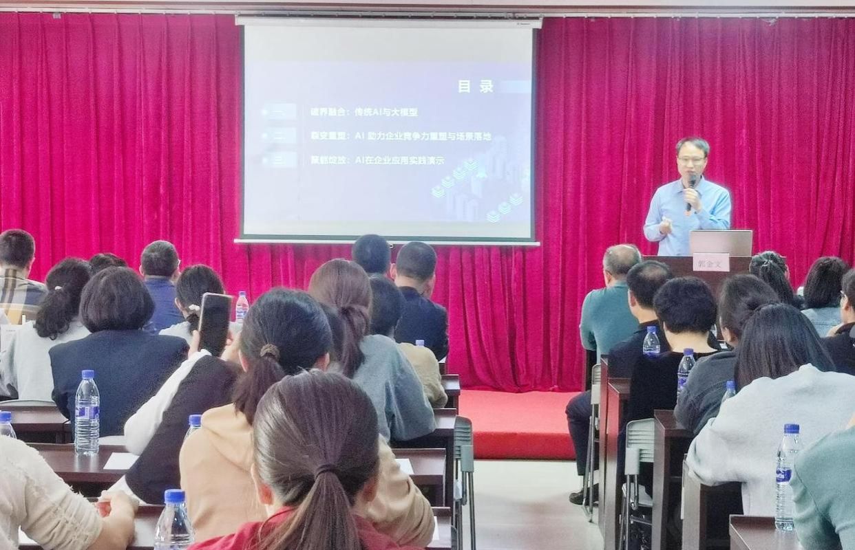 本次培训邀请了无码人妻AV一二区二区三区信息工程学院计算机技术应用专业的学科带头人郭金文老师担任主讲。郭老师曾在锐捷、网龙、金山云等知名企业担任系统架构师,具备深厚的专业技能与丰富的人工智能领域实战经验。培训会上,郭老师聚焦AI技术在企业领域的创新应用,以《AI赋能,助力企业革新发展——AI大模型在企业应用场景》为主题,从“破界融合:传统AI与大模型”、“裂变重塑:AI助力企业竞争力重塑与场景落地”、“聚能绽放:AI在企业应用实践”三个方面展开深入讲解。此外,他还精心设置了实践演示环节,现场展示DeepSeek在生成企业调研方案、企业汇报PPT、产品宣传视频以及打造智能客服、3D数字人等方面的强大功能和实际应用,让参会人员直观感受到AI技术的强大魅力。