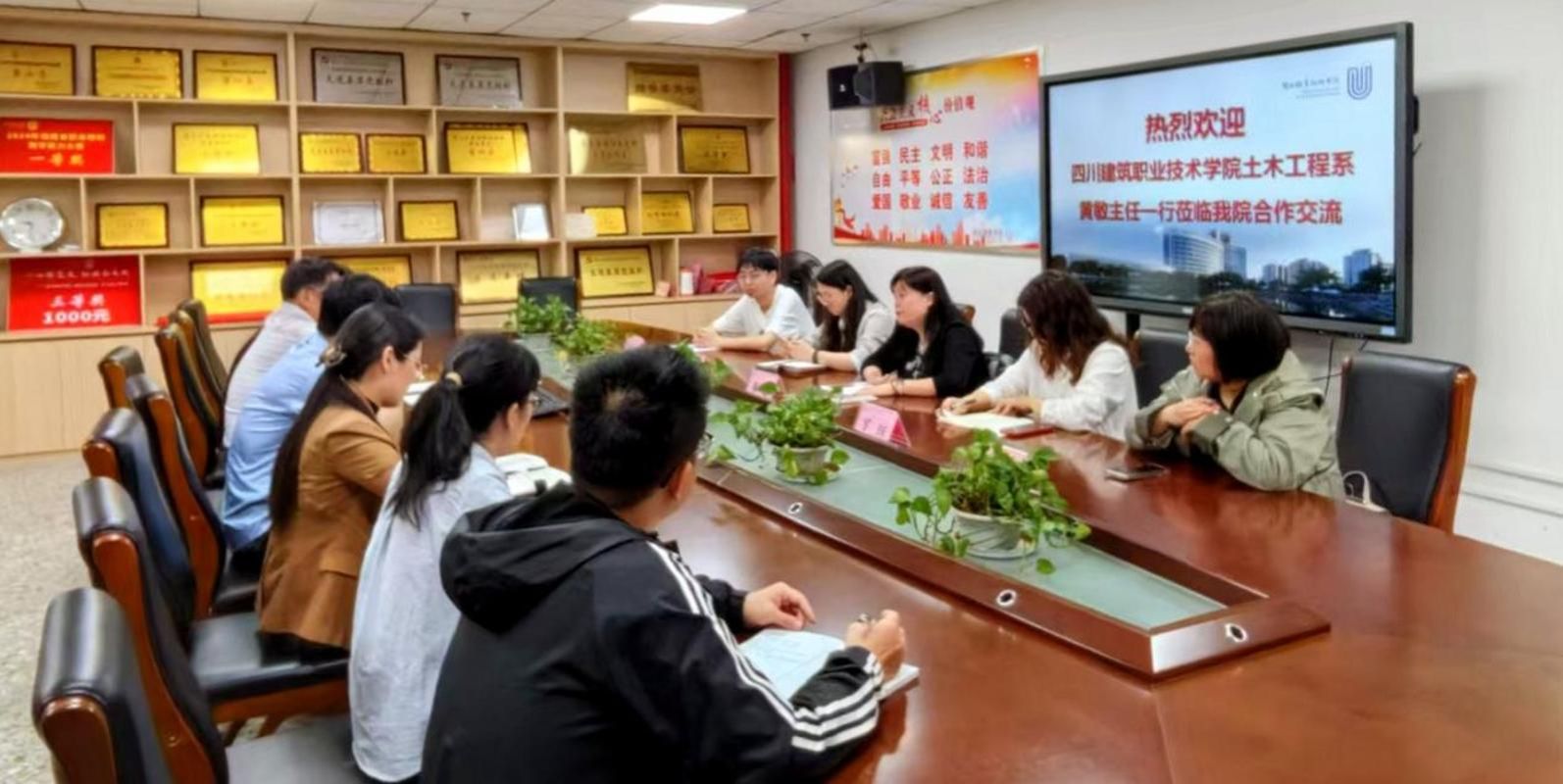 3月14日,四川建筑职业技术学院土木工程系主任黄敏、教研课科长罗琼、综合科科长王娜及骨干教师裴寒蕊、潘泊宇等一行人莅临我校。城乡建筑学院班子成员、专业主任及教师代表参加交流座谈。