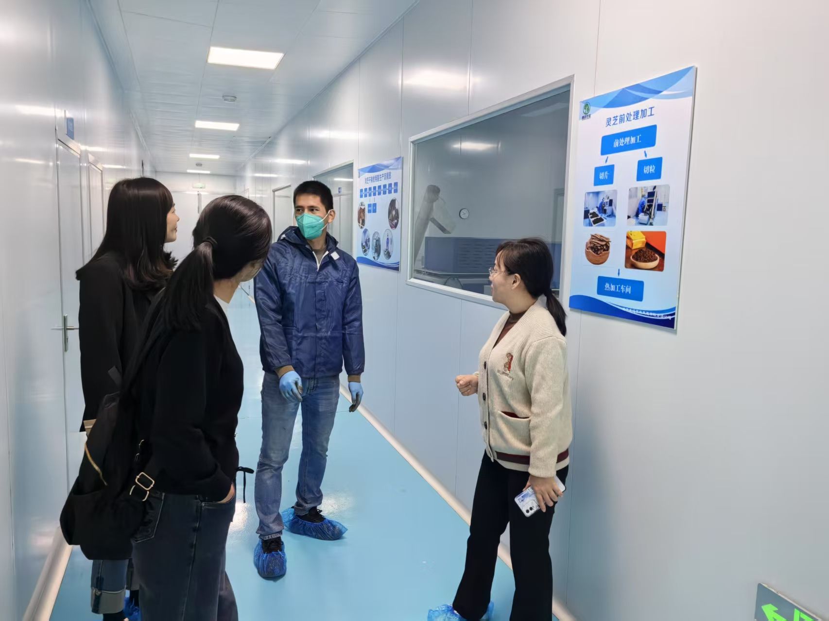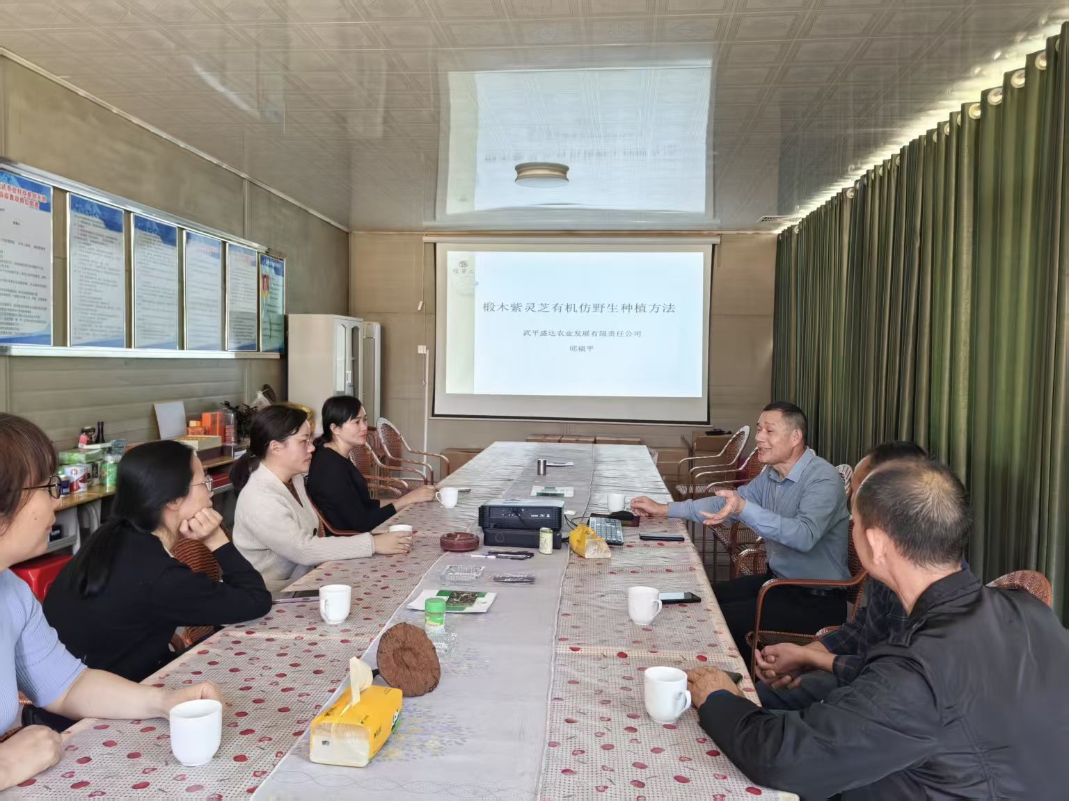 武平县盛达农业发展有限责任公司是致力于灵芝、仙草及食用菌品种培育、技术推广、基地种植、加工销售等业务的综合性农业企业。教师们深入实地,考察了该公司位于下坝乡的灵芝菌包制作棚、灵芝培养棚、灵芝林下仿野生种植基地,以及中山镇的灵芝前处理间、热加工间、内包装间、外包装间等灵芝食品生产车间。公司董事长邱福平向教师们传授了《椴木紫灵芝有机仿野生种植方法》、《仙草种植方法》等专题知识。公司总经理邱建成与学校教师进行了深入的座谈交流,表达了与学校在灵芝特色化产品的开发、科研合作、人才培养、成果转化等方面进一步深化合作交流的热切期望。教师团队还到武平万安镇捷文村的龙岩市泰元生态农业有限公司金线莲种植示范基地,了解了金线莲组培育苗、智能温控大棚种植、产品加工及销售等先进技术。
