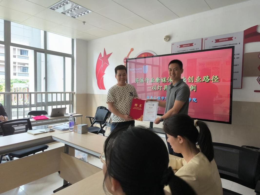 活动现场设有灯具产品体验、新媒体案例分解等实践环节,软件技术专业学生杨阳在体验后表示:"陈学长将工程专业知识与新媒体运营结合的模式,为我们打开了职业发展的新思路。"信息工程学院党委副书记刘剑友指出,此类"企业家导师进课堂"活动已常态化开展多年,是《就业指导》课程的实践延伸,推动学院就业创业指导从理论传授向实战赋能转型升级。