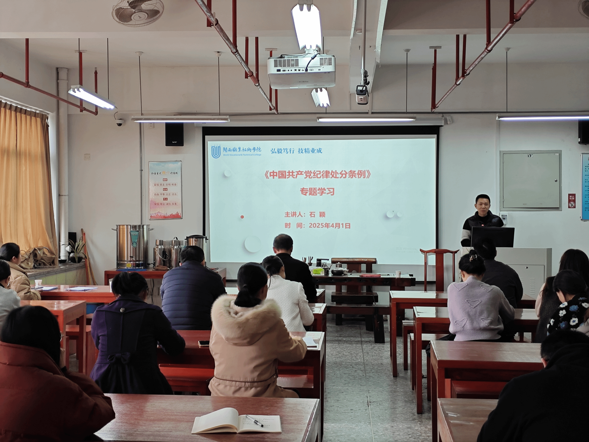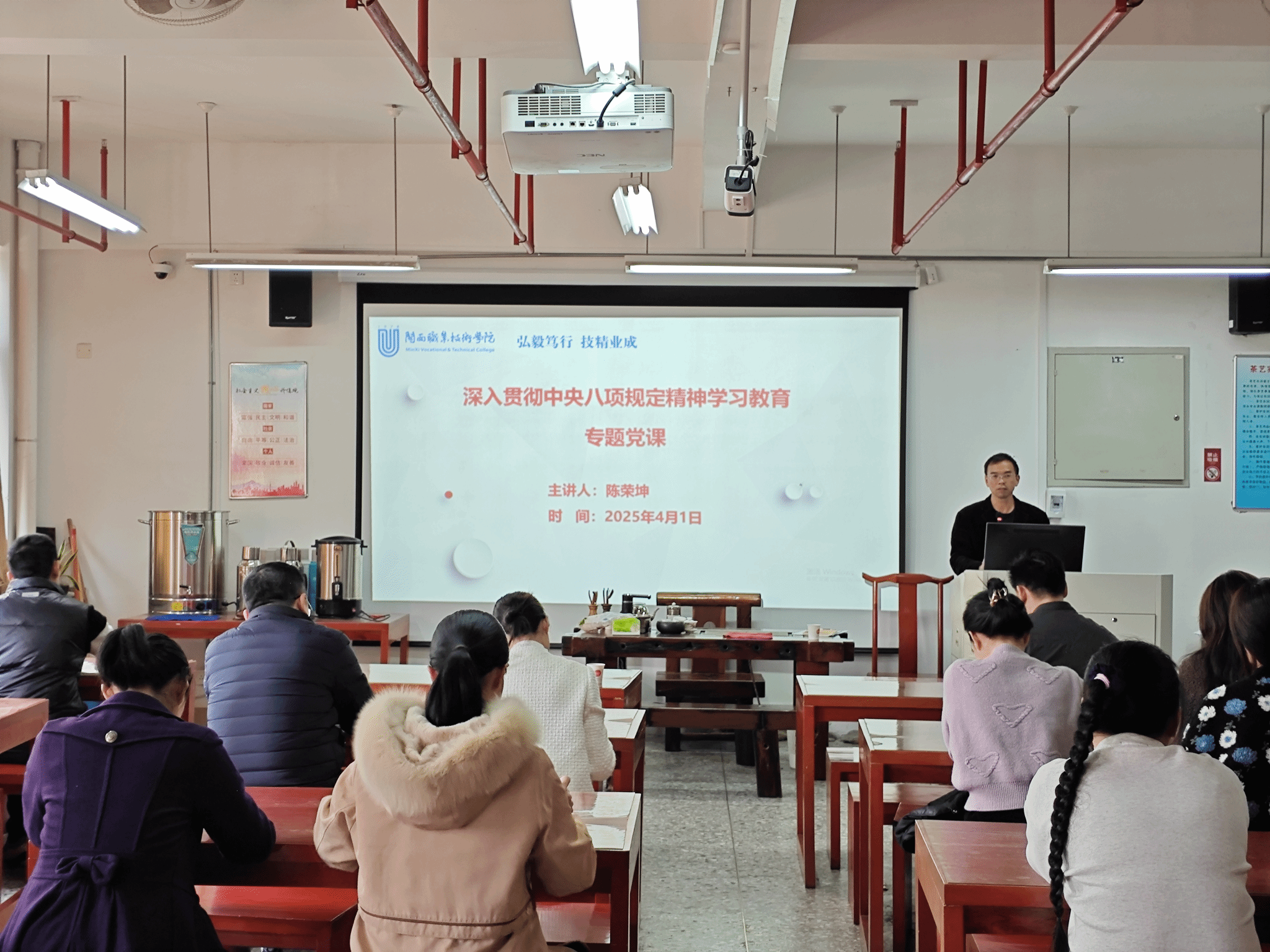 文旅院党委负责人组织开展《深入贯彻中央八项规定精神学习教育》专题党课学习,他强调,作风建设永远在路上,深入贯彻中央八项规定精神学习教育是全面从严治党的破题之举,是我们党在新时代的徙木立信之举。全体党员必须坚决贯彻落实中央八项规定要求,要夯实廉洁自律的防线,确保自身言行有所忌惮、心中常怀敬畏,要求各党支部要从学习研讨、查摆问题、集中整治等方面认真落实相应的工作清单,通过扎实举措践行党的初心使命,在学中知敬畏、在查中找差距、在改中见实效,一体推进学查改,确保学有质量、查有力度、改有成效,不断提高支部工作效能。此外,学院领导班子还分别就《中国共产党纪律处分条例》组织了学习,开展了师德师风专题学习,并对社会服务、教材建设、绩效发放等有关情况进行了通报。