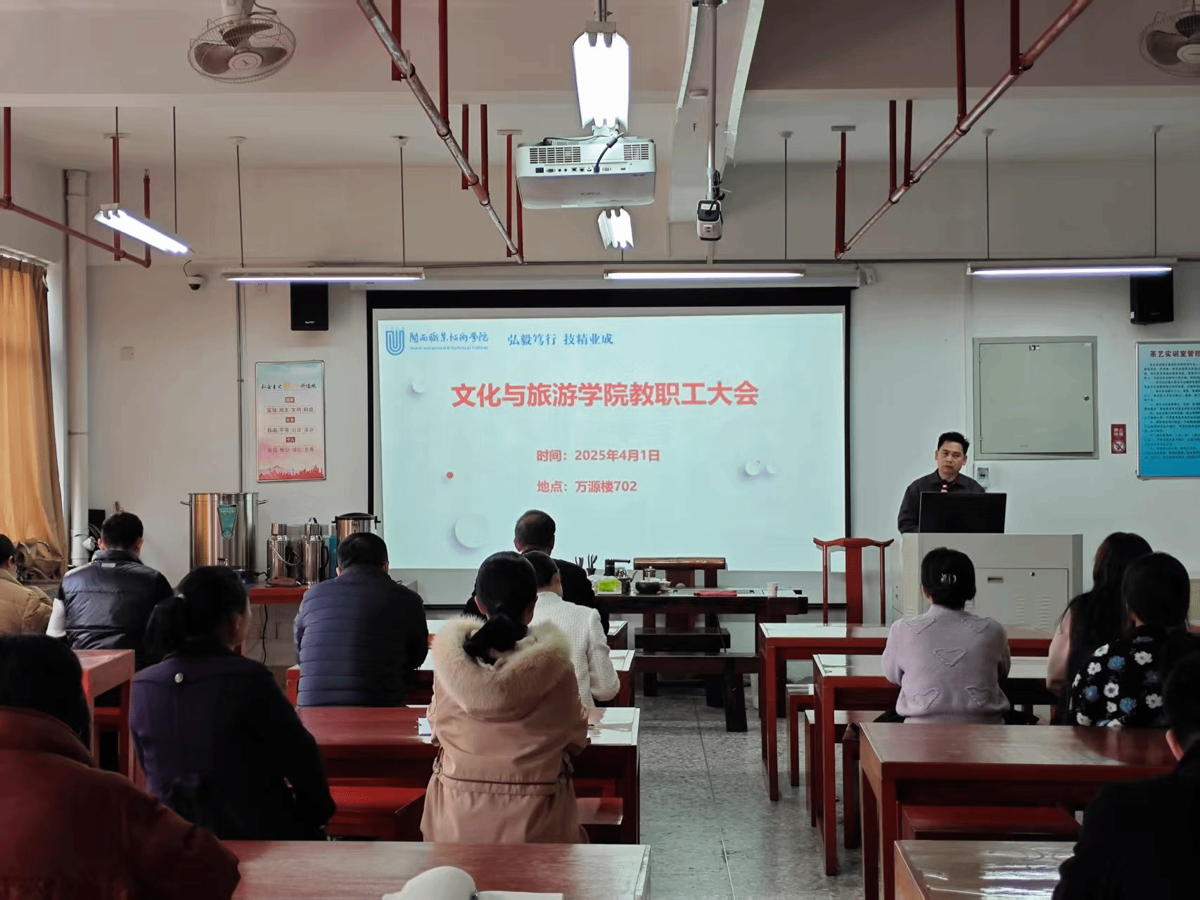 4月1日下午,文化与旅游学院召开教职工大会,挂钩校领导张源峰副校长出席本次会议并发表讲话。