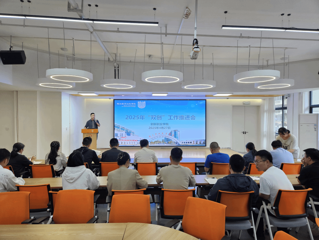 2025年4月27日,创新创业学院召开2025年双创工作推进会,推动双创工作再上新台阶。创新创业学院相关负责人主持了会议,各二级学院创新创业分管领导、工作站站长及助理、各参赛项目师生代表参加。