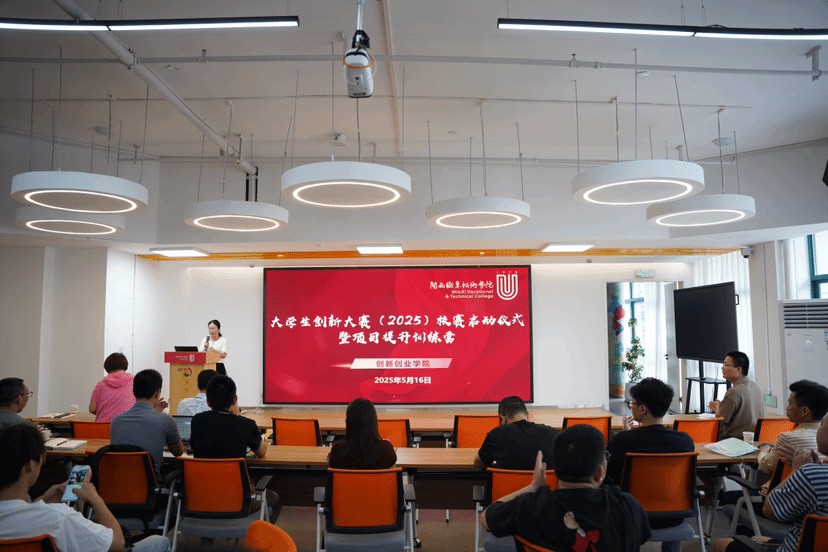 为深化创新创业教育改革,持续营造敢闯会创良好氛围,培育一批优质双创项目,提高双创竞赛的整体水平,5月16日-17日,我校在万源楼三楼龙标大学生路演厅举行大学生创新大赛(2025)校赛启动仪式暨项目提升训练营。各二级学院创新创业分管领导、工作站站长及站长助理、创新创业学院全体人员,以及全校对创新大赛感兴趣的老师和各二级学院学生代表、校青年创业者服务站学生代表,共计100余人参加。