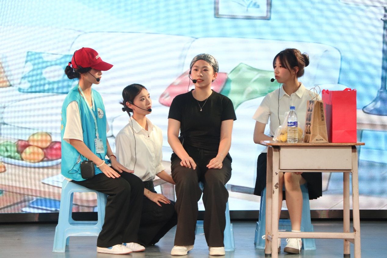 财经商贸学院心理中心充分发挥专业优势,联合社区党支部精心策划《直播间里的真心话》《诚信商业法院》等原创剧目。情景剧以大学生活为蓝本,通过“直播带货话术陷阱”“创业合同纠纷”等现实场景,将诚信价值观具象化为可感可知的戏剧冲突。