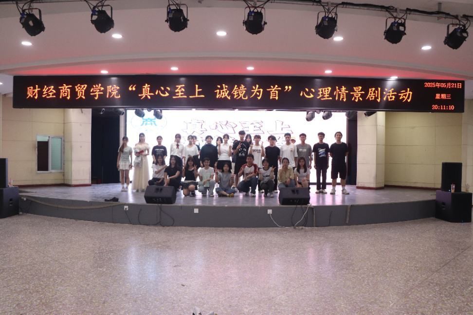 2025年5月21日,财经商贸学院在数字化艺术中心成功举办“真心至上,诚镜为首”心理情景剧活动。活动通过“院社联动”创新德育模式,财经商贸学院第三党支部书记谢聪敏、社区党支部宣传委员章琳丽和辅导员蓝冬玉、俞如楠、李琴等老师以及学生代表近200人参与活动。