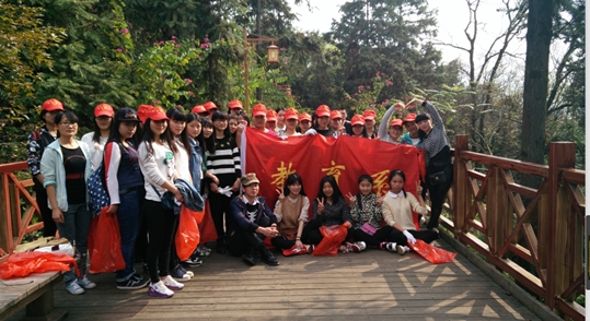 近日,教育系师生青年志愿者服务队在天马山进行义务环境清理活动。教育系师生志愿者近50人参加。