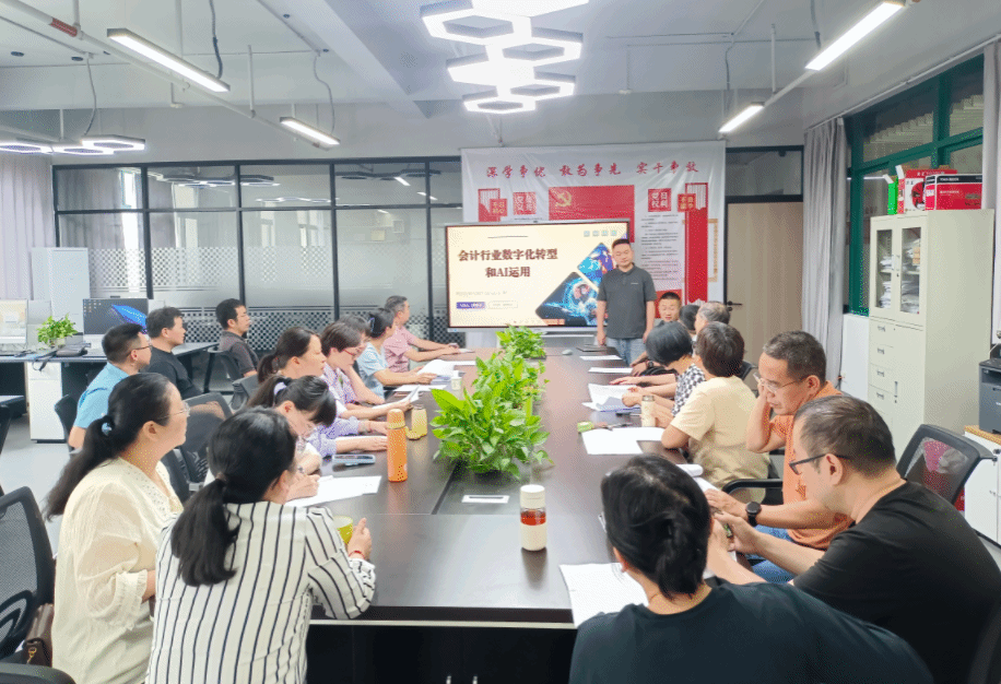 2025年5月27日下午,财经商贸学院在万源楼801会议室成功举办“会计数字化转型与AI应用”专题培训。本次培训特邀企业兼职教师君维财税集团有限公司总经理陈维富担任主讲嘉宾,为专业教师带来行业前沿的数字化实践与人工智能技术应用分享。学院大数据与会计专业全体教师参加了此次培训,现场学习氛围浓厚,交流热烈。