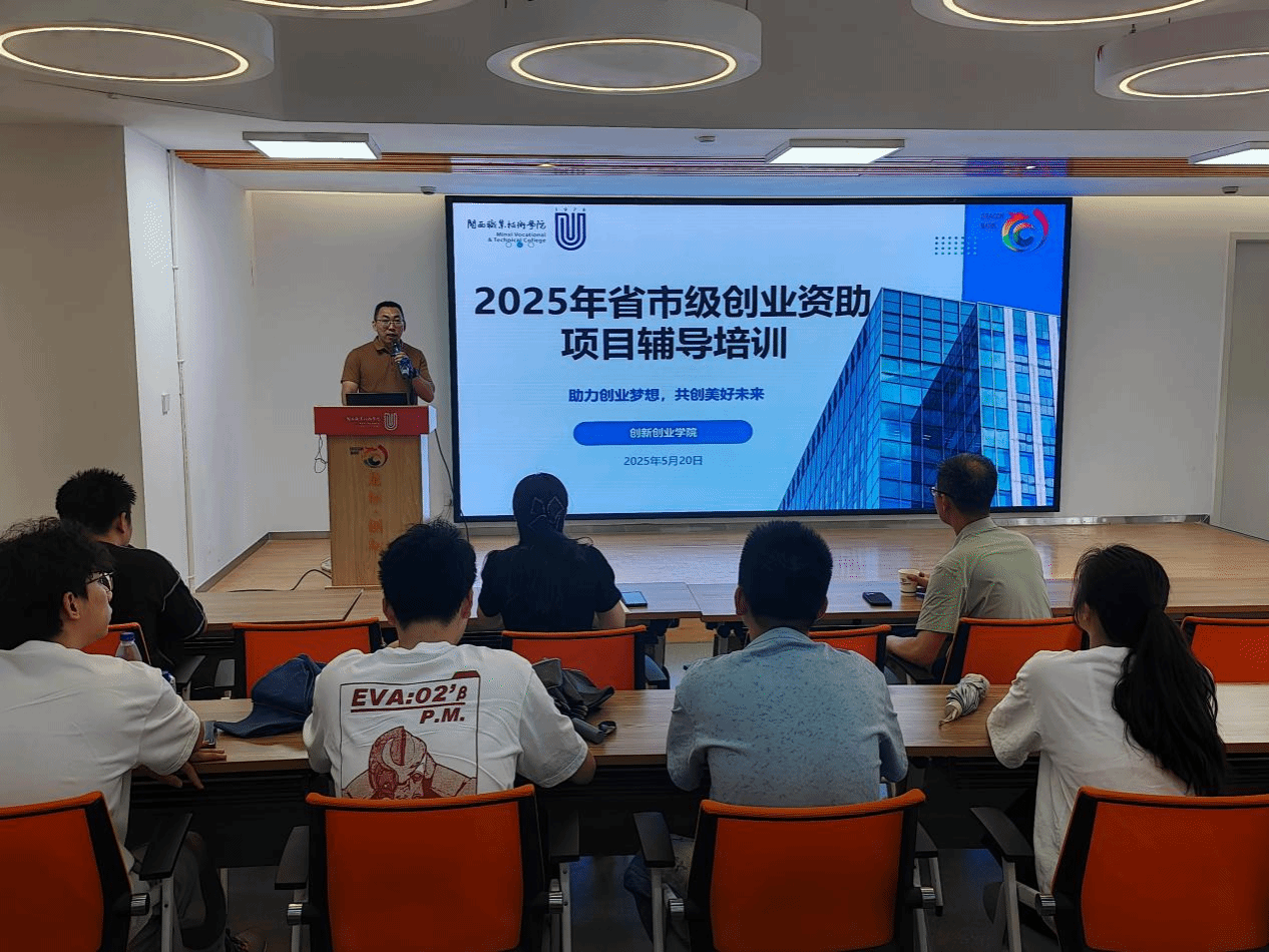 2025年5月20日,在万源楼三楼路演厅举办了为期一天的省市创业资助项目辅导,我校入围省市大中专学生创业资助评审的16个项目团队近30人参加。
