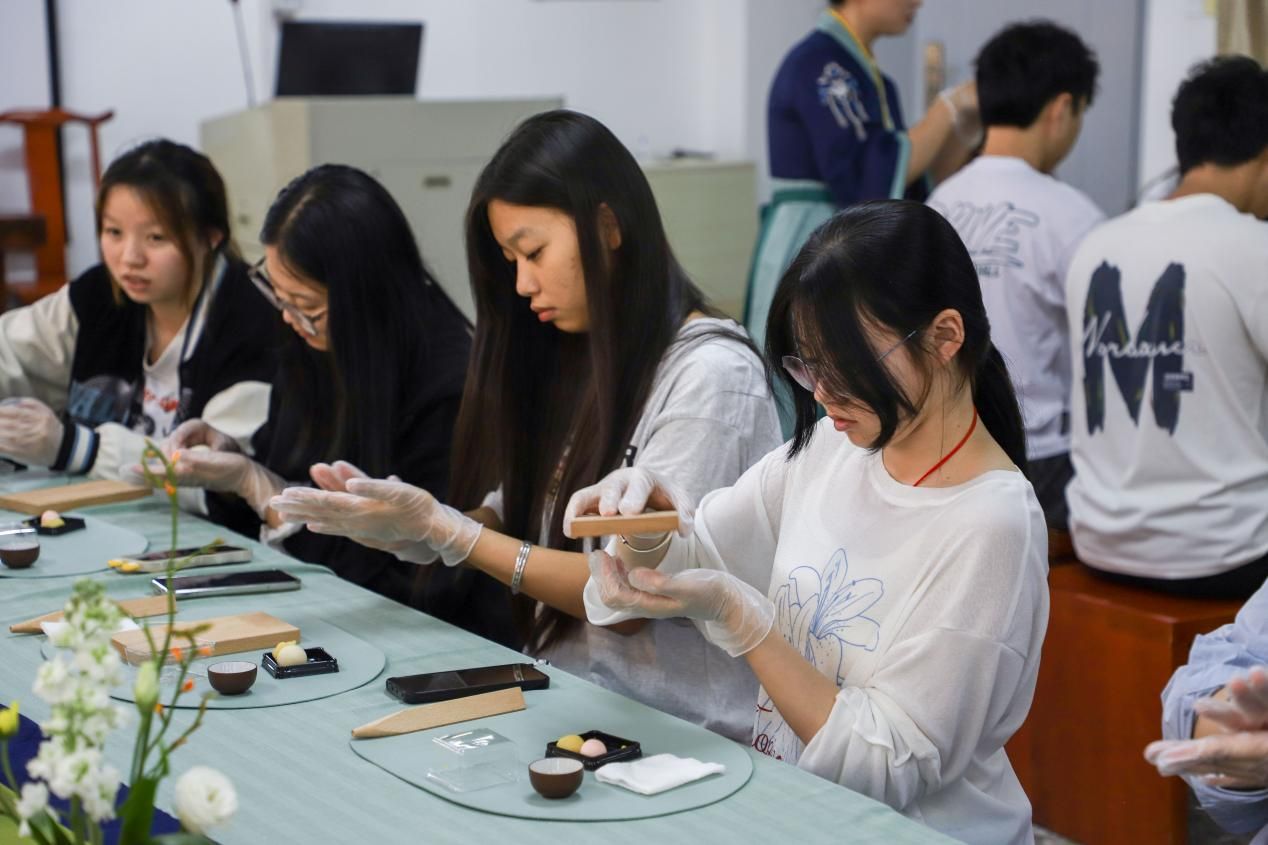 此次活动以沉浸式手作体验为载体,让师生们在雅致的茶艺和悠扬的古琴声中学习了非遗茶果子的制作技艺,也体悟到园林植物美学与传统文化的创新融合。参与学生表示,在揉制面团与雕琢造型的过程中,深刻体会到“以手传心,以艺承道”的非遗传承真谛,未来将继续从传统文化中汲取设计灵感,让非遗技艺在专业实践中焕发新生!