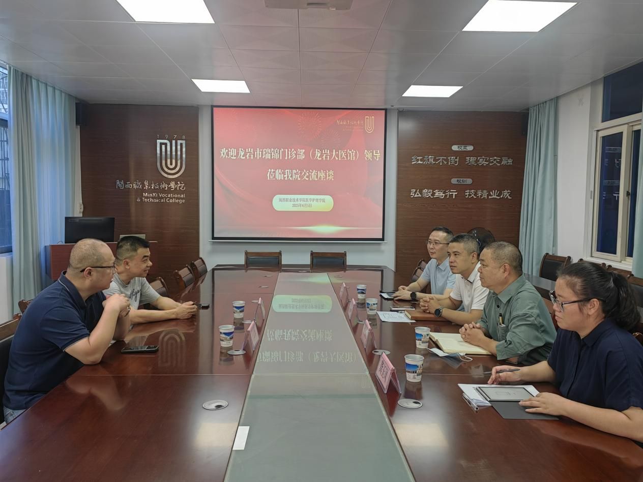 交流会上,曹文元院长详细介绍了学院的专业特色、人才培养方向以及“中医+康养”融合发展的办学探索。瑞锦门诊部负责人王云海主任则分享了其依托深厚中医资源开展的特色康养服务模式与宝贵实践经验,并对当前康养产业急需的复合型技术技能人才需求进行了精准分析。双方还就如何将中医独特优势深度融入现代康养课程体系、共同开发紧贴行业前沿的教学资源与实践项目、建立稳定的校企协同育人机制等关键环节进行了务实探讨。双方一致认为,将中医特色与康养服务模式结合,是未来健康服务领域的重要方向。交流现场气氛融洽,双方在多个合作方向上达成初步共识。