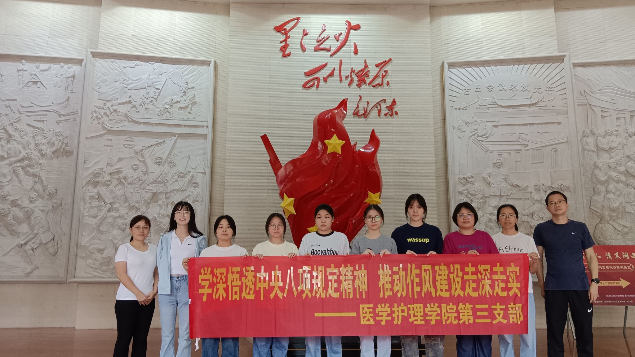 活动当日,第三党支部还组织教师党员及部分入党积极分子前往中央苏区(闽西)历史博物馆参观学习,围绕“学深悟透中央八项规定精神,推动作风建设走深走实”开展专题学习与动员。