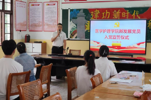 为传承红色基因,近日,医学护理学院党委在红土初心讲堂举行新发展党员宣誓仪式,8位预备党员庄严加入中国共产党。仪式按宣读名单、佩戴党徽、集体宣誓、代表发言、书记寄语流程开展,以庄重仪式强化党员身份认同。