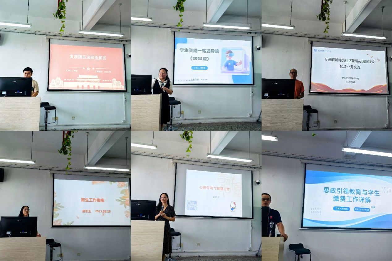 为进一步提升辅导员(班主任)的业务工作水平,财经商贸学院于2025年8月28日在万源楼811会议室举办了为期一天的辅导员(班主任)业务培训班,全体辅导员(班主任)参加本次培训。
