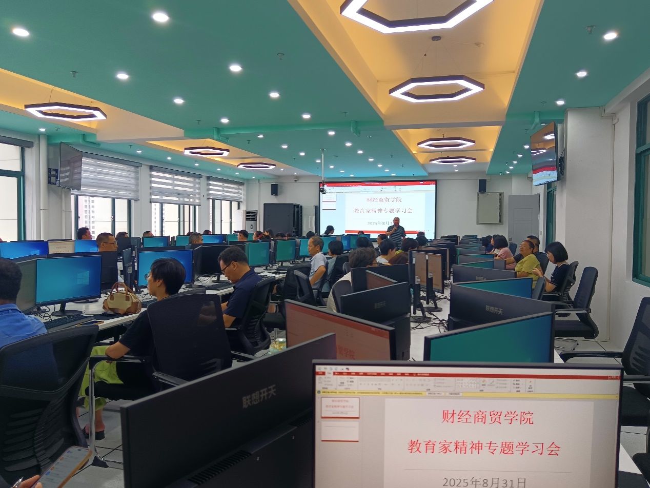 8月31日下午,财经商贸学院在万源楼813实训室召开弘扬教育家精神专题学习会,学院全体教职工参加。教学副院长领学中共福建省委教育工作委员会等十部门印发的《福建省弘扬教育家精神加强新时代高素质专业化教师队伍建设若干措施》(闽委教综〔2025〕5号),该文件是为深入贯彻2024年8月中共中央、国务院印发的《关于弘扬教育家精神加强新时代高素质专业化教师队伍建设的意见》有关要求和部署,落实全国、全省教育大会精神,我省围绕教育家精神铸魂强师,建设一支师德高尚、业务精湛、结构合理、充满活力的高素质专业化教师队伍,结合实际提出具体贯彻落实举措而制定的。《福建省弘扬教育家精神加强新时代高素质专业化教师队伍建设若干措施》全文共分五大部分,重点实施“五大行动”。一是实施新时代理想信念筑基行动。二是实施新时代师德师风铸魂行动。三是实施新时代专业素养提升行动。四是实施新时代管理改革增效行动。五是实施新时代尊师惠师激励行动。
