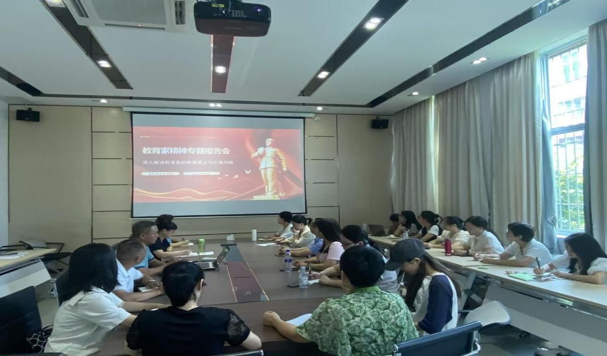 随后,开展了教育家精神专题报告会。报告从教育家精神的历史渊源、时代内涵与实践路径三个维度,深入解读了教育家精神的精髓要义与价值内核。报告强调,教育家精神不仅是教师个人修养的标杆,更是推动教育高质量发展的强大动力,要求全体教师将教育家精神内核转化为教育教学的实际行动,努力培养更多担当民族复兴大任的时代新人。