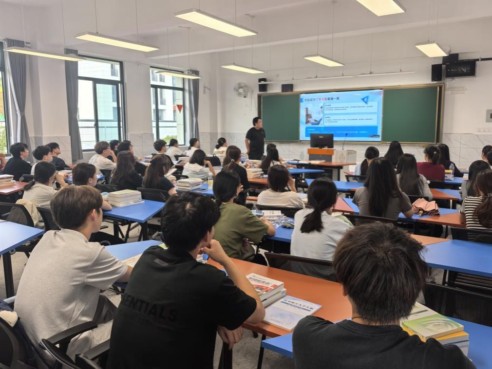 随后,电子商务专业主任赖春星为全体电商专业新生开展入学专业教育,从行业前景、课程体系、师资力量、职业发展等方面进行介绍,增强学生的专业认同感和学习动力。