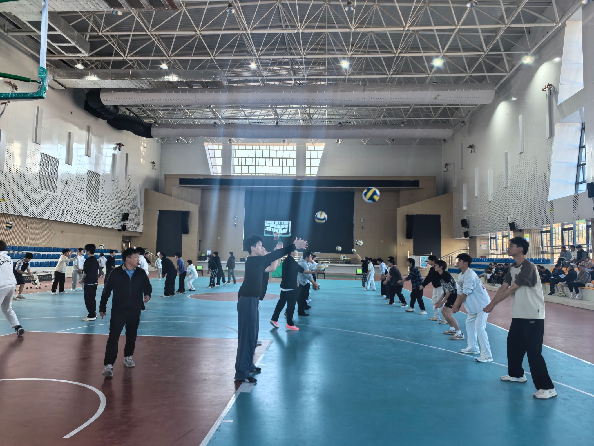 体育教研室率先开启精彩篇章。王光平老师在汀州校区体育馆带来了一堂聚焦学生体质健康与排球技能培养的公开课。课堂上,王老师充分考虑高职学生身心特点,将排球基础动作教学与趣味体能训练巧妙融合,通过示范讲解、分组练习、互动纠错等多样化教学方法,把运动能力、健康行为、体育精神有机融入课堂教学,充分调动学生积极性,夯实了他们的排球基本技能,激发了体育锻炼兴趣。