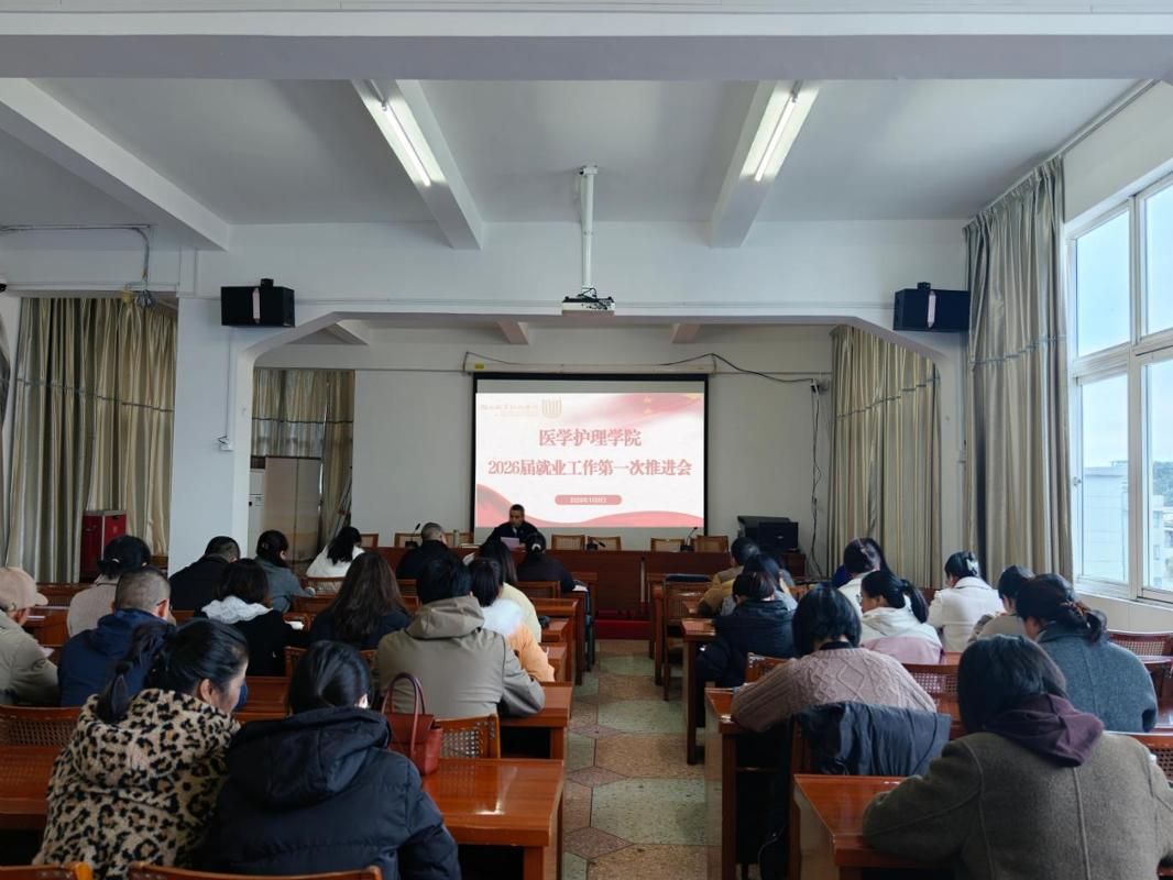 为贯彻落实学校就业工作部署,扎实推进2026届毕业生高质量充分就业,1月5日下午,医学护理学院组织召开了2026届毕业生就业工作第一次推进会。学院全体教职工参加会议,共同分析形势、凝聚共识、谋划举措。