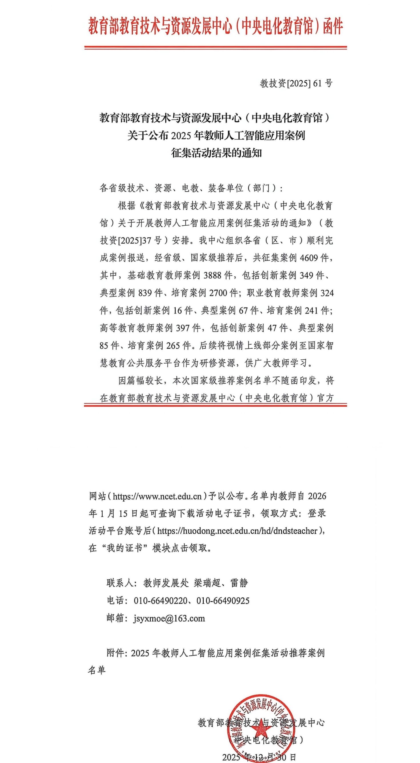 据悉,本次案例征集活动共收到全国各级各类教师案例4609件,其中职业教育教师案例324件。经省级推荐、国家级评审,最终评出职业教育类创新案例16件、典型案例67件、培育案例241件。其中福建省入选的职业教育案例共计15件。