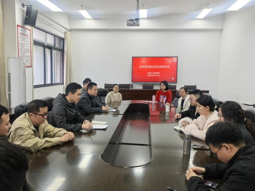 为深入贯彻学校“深学争优、敢为争先、实干争效”行动部署,持续加强和改进思想政治教育工作,全面落实立德树人根本任务,提升辅导员队伍的专业素养和履职能力,3月4日,信息工程学院在辛耕楼会议室召开思想政治教育队伍研讨培训会。学院党委书记涂海英、副书记刘剑友出席,全体辅导员参加会议。