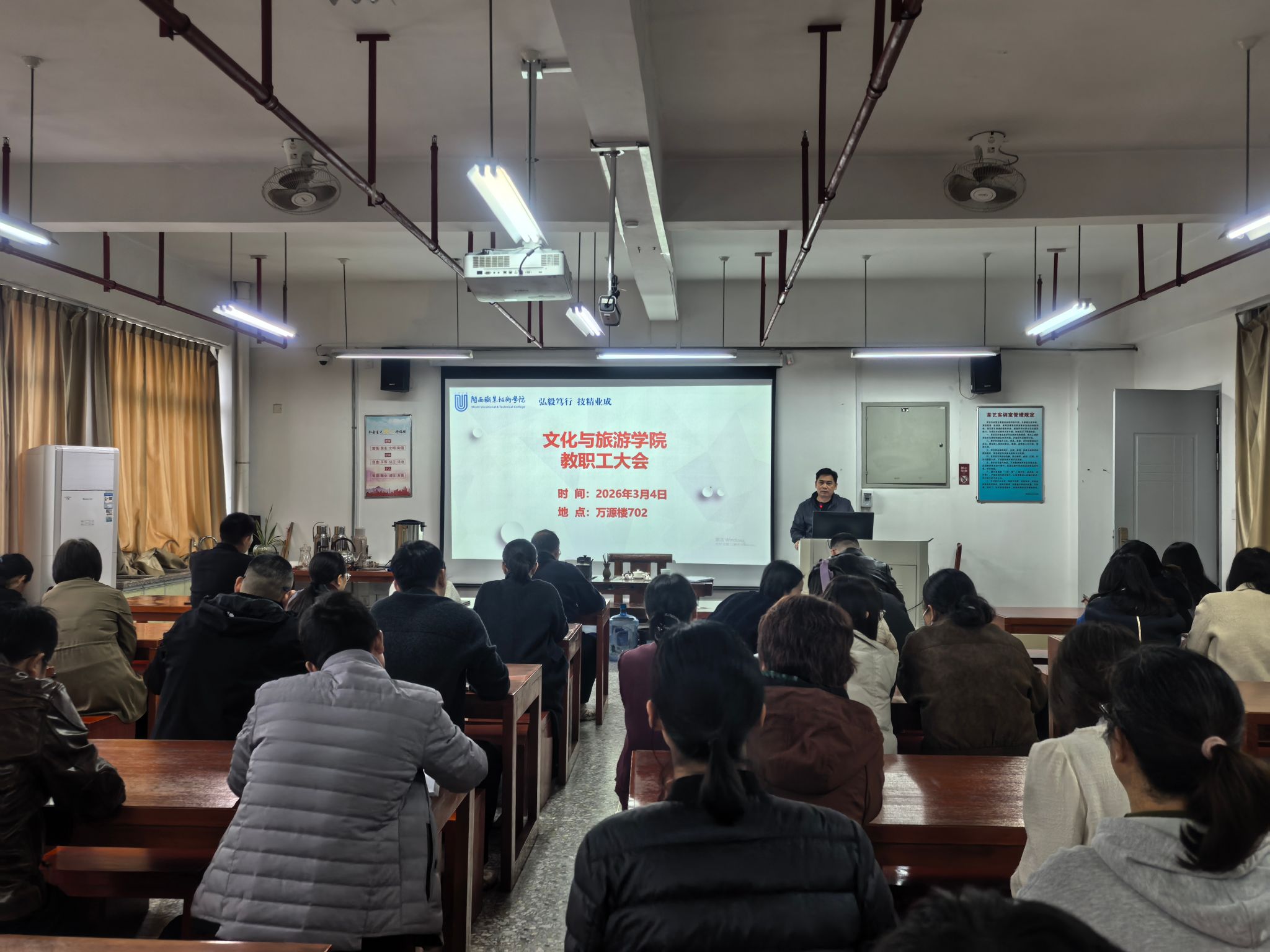 3月4日,文化与旅游学院新学期全体教职工大会在万源楼702会议室举行。会议聚焦学校升本、双高建设、人才培养、教学改革等核心任务,认真组织学习并传达学校党委,系统部署了新学期各项工作。