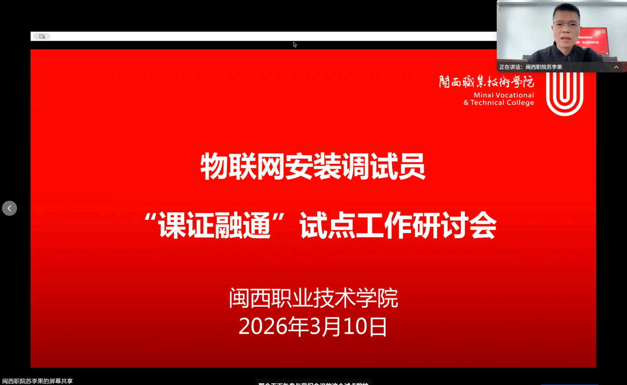 为深入贯彻落实国家“学历证书+若干职业技能等级证书”制度要求,积极响应福建省职业技能鉴定指导中心发布的《关于开展职业技能等级认定“课证融通”试点工作的通知》(闽劳鉴〔2026〕6号)文件精神,作为“物联网安装调试员”职业试点牵头院校,我校于2026年3月10日下午成功举办了该工种“课证融通”试点工作研讨会。