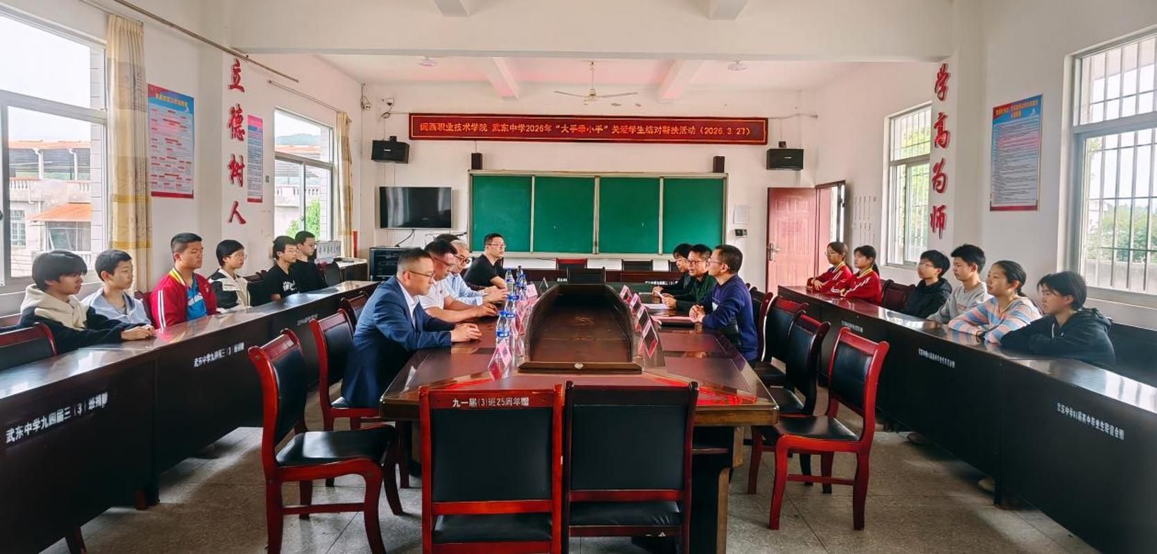3月27日,城乡建筑学院“大手牵小手·结对关爱助成长”帮扶活动在武平县武东中学开展。城乡建筑学院院长林茂才、龙岩华兴彩印有限公司总经理李旭、广东长新隆智能科技有限公司总经理刘开文,武东中学校长吴梅涛、工会主席林德辉、副校长方玉萍,武东中学12名受助学生及双方教师代表参加。