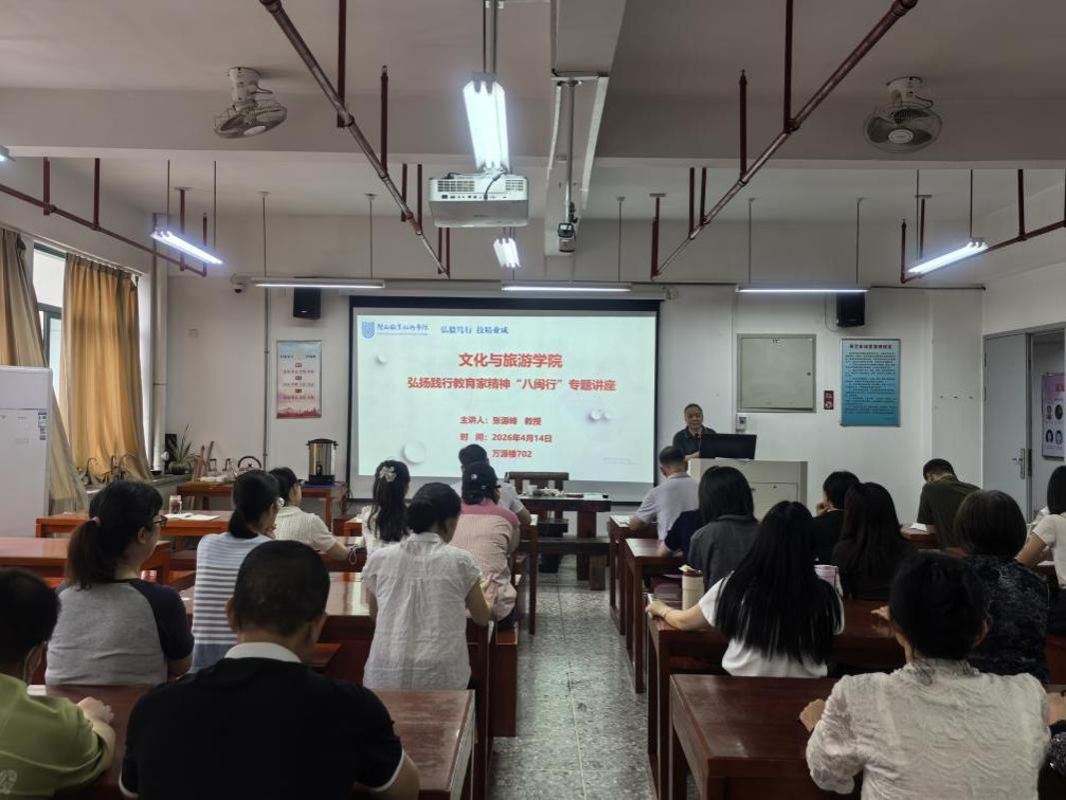 4月14日下午,文化与旅游学院在万源楼702教室举办“聚焦师德涵养 筑牢师德根基”——弘扬践行教育家精神“八闽行”专题讲座。本次活动是学院落实立德树人根本任务、打造“红土匠心”师德品牌的重要安排,也是结合“双高”建设与年度重点工作,推动教师队伍高质量发展的关键学习活动。讲座特邀副校长张源峰教授担任主讲,学院全体教职工参加学习。