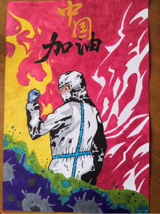 图5 三等奖作品--2018级教育与艺术学院何美婷的《中国加油》