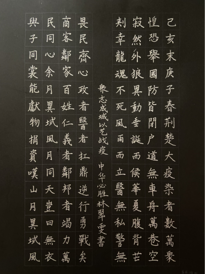 2020年5月25日—6月25日,我校开展了由校团委主办、书画协会承办,主题为“众志成城,以艺战‘疫’”的第二届书画作品评比。