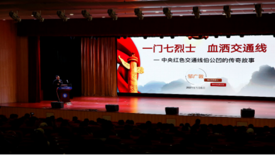 仪式后,邹广敦分享了《一门七烈士 血洒交通线》中央红色交通线伯公凹的传奇故事,用朴实的革命故事给师生们上了一堂生动的思政课,充分发挥了闽西红色文化的育人功能,将红色基因融入学生的血液,加强了学生的爱国主义教育、理想信念教育。