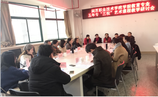 为了进一步规范学前教育“中高职艺术课程衔接“工作,1月14日,我校教育与艺术学院召集龙岩华侨职业中专、上杭职业中专、长汀职业中专学前教育专业20余名艺术类教师集中研讨“五年专” 人才培训方案中艺术类课程的设置及各类课程大纲中具体应完成的教学内容、及考核方式等。