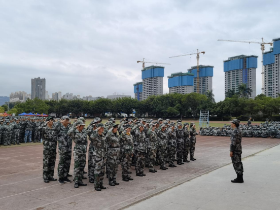 军训虽然迟到,但是没有缺席。自开训以来,全体新同学听从教官指挥、服务任务安排,从开始几天的高温到后来的大雨和断崖式的降温,他们克服各种困难,苦练军事技能,勤学红歌军歌,参加消防演练,学习国防知识,以集体荣誉为重,团结协作,互帮互助,不仅向全院师生展示军训成果,还决心在全校会操表演中勇夺佳绩。