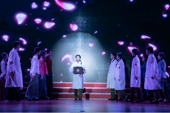 医护检验教研室主任王丽珊说:我院节目《红医》,体现一个个医护人员顶着枪林弹雨,勇敢无畏的冲在前面救护伤员,体现出了医护人员不畏艰难险阻、勇担风险、救死扶伤的无畏精神。整场表演,在学生的认真表演中,看到了故事之外的奉献和担当,短短的时间能够排演出如此感人的情景剧,这本身就是对红医文化的传承。