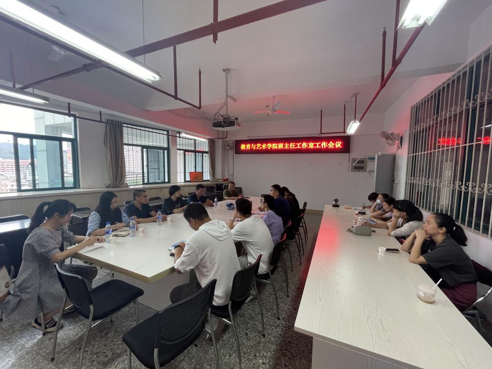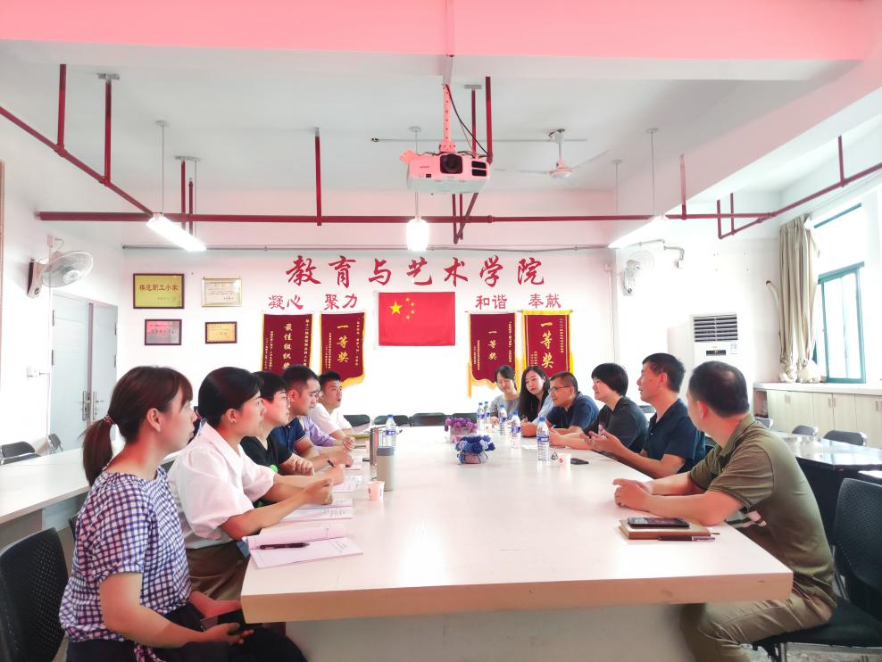 9月7日下午,在岩声楼810会议室,学工处领导和老师与教育与艺术学院班子成员、辅导员、班主任进行工作交流,指导推进双高校建设一级指标“立德树人”等工作。