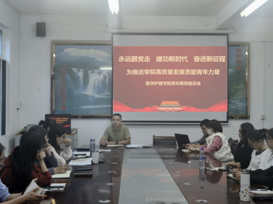 近日,医学护理学院召开青年教师座谈会。院党委委员、团学干部及全体青年教师参加会议,院党委负责人主持座谈会。