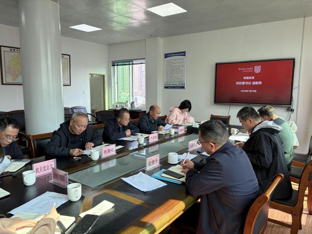 1月19日上午,校党委理论学习中心组在协成楼会议室召开了2026年第一次学习会,聚焦“用好红色资源、赓续红色血脉”专题,校党委书记卢伟耀主持会议并领学。校纪委书记温献荣,校党委委员、副校长张源峰作专题发言,中心组成员围绕学习内容进行了深入的交流研讨。